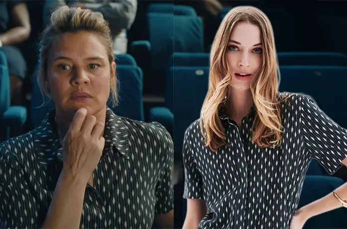 Céline Hazan (Marie Denarnaud) porte ce chemisier noir imprimé dans HPI 5×08.