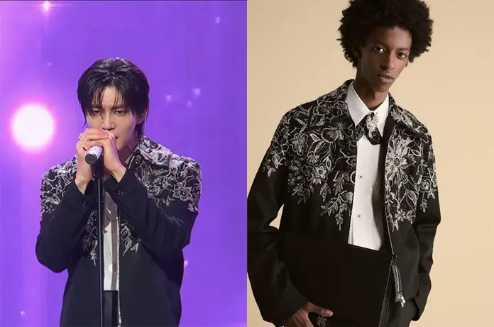 Dans I Dol I (아이돌아이, Le Miroir aux idoles), sur Netflix, Do Ra‑ik (Kim Jae‑young 김재영) apparaît en solo, sur scène, dans une veste noire ornée de délicates broderies florales blanches. Une pièce issue de la collection printemps‑été 2025 d’Amiri.