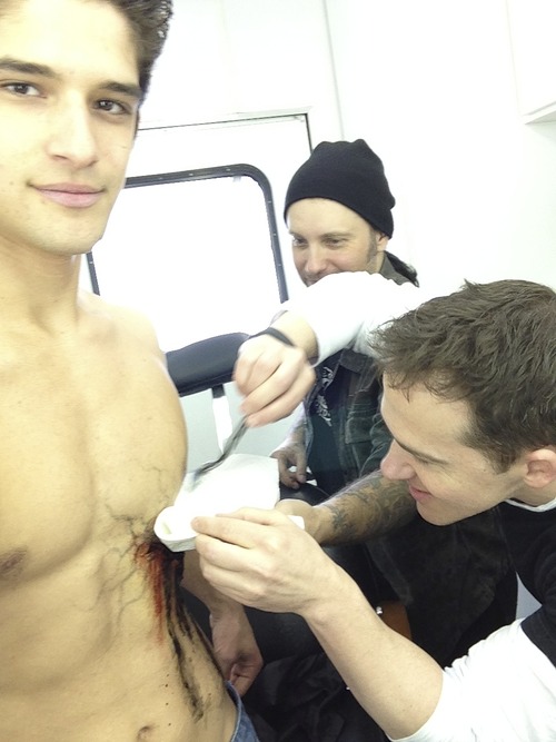 I can honestly say I have never waxed Hoechlin’s chest. I have shaved Posey’s nipples, though. (Honnêtement, je peux dire que je n’ai jamais épilé le torse d’Hoechlin, mais j’ai rasé les tétons de Posey).