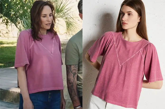Rose (Vanessa Demouy) porte ce t-shirt rose dans Ici tout commence épisode 1215.