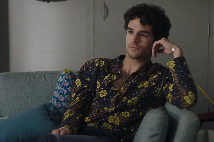 Greg (Mikaël Mittelstadt) porte cette surprenante chemise bleue aux fleurs d’un jaune éclatant dans Ici tout commence 522.