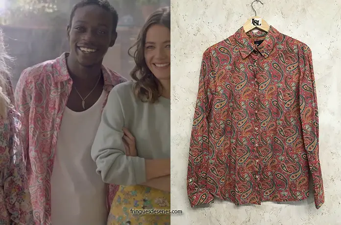 Dans le générique d’Ici tout commence, mais aussi dans quelques épisodes, on voit Enzo (Azize Diabaté) avec une chemise rouge/rose à motif cachemire. Il s’agit d’une chemise un peu vintage, de filles, signée Tommy Hilfiger.
