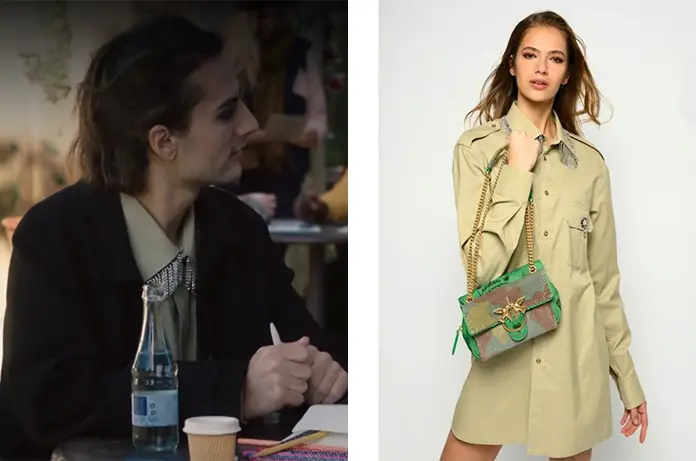 Eliott (Nicolas Anselmo) porte cette robe chemise (en guise de chemise) avec des strass qui bordent le col, dans Ici tout commence 566.