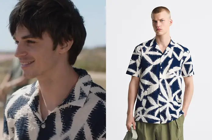 Thibault Leroy (Félix Pacaut) apparait sur une piste de danse dans Ici tout commence 690… il aborde Jasmine dans une chemise en seersucker imprimée, en bleu et blanc.