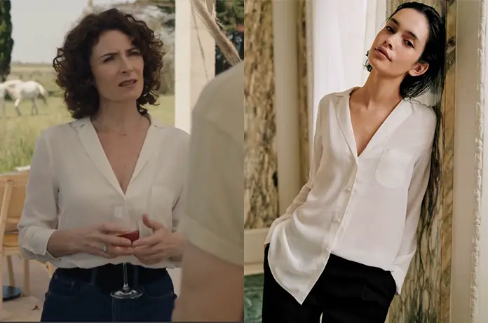 Clotilde (Elsa Lunghini) reporte son chemisier écru, dans Ici tout commence épisode 719.