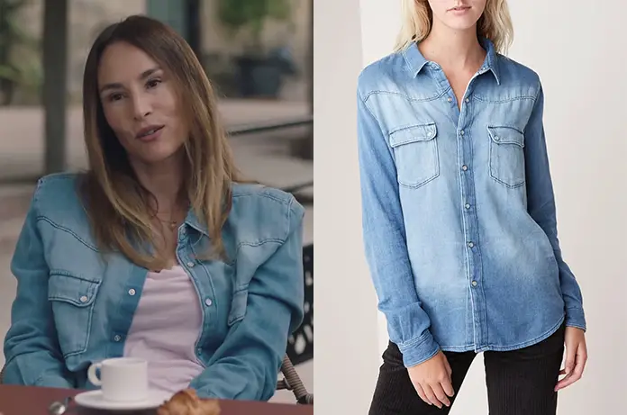 Rose (Vanessa Demouy) continue à se démener pour le pop up dans Ici tout commence 190. Elle porte une veste en jean, avec poches.