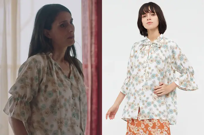 Alice (Diane Robert) porte ce joli chemisier fleuri dans Ici tout commence 189. Il fait partie de la collection Paul&Joe X Uniqlo.