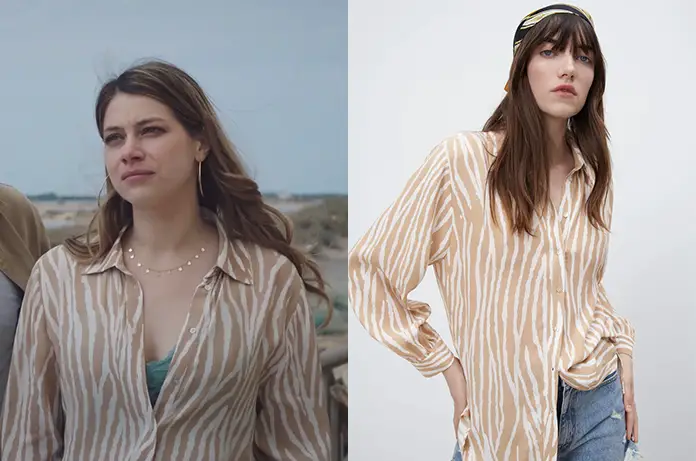 Laetitia (Florence Coste) retrouve son côté animal dans Ici tout commence 150 avec cette chemise à imprimé écru. On la trouve ici