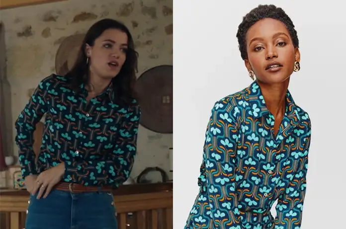 Anaïs (Julie Sassoust) porte, à la coloc, une chemise imprimée, avec un motif très ’70, dans Ici tout commence épisode 811.