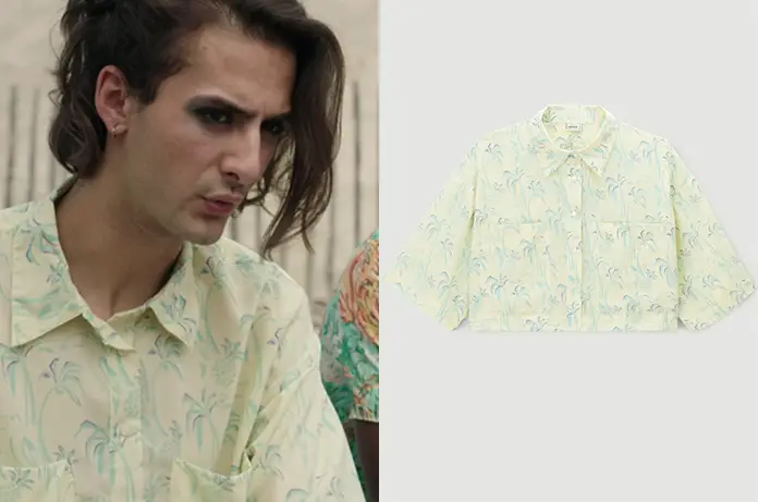 Au début de l’épisode 462 d’ici tout commence, Eliott (Nicolas Anselmo) porte cette chemise jaune, courte, à motifs tropicaux. On la trouve ici