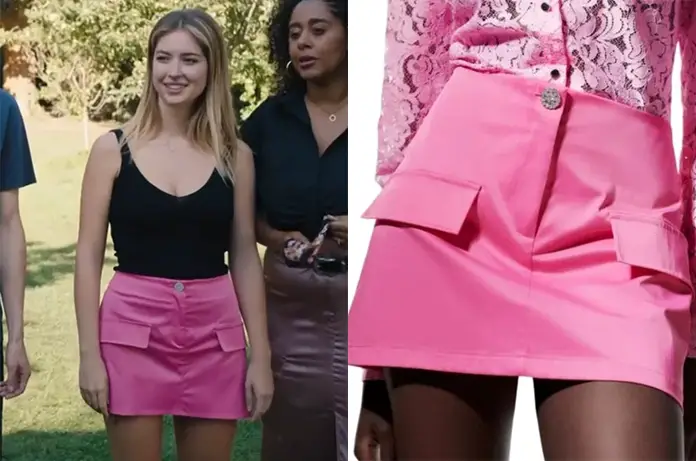 Pour sa fête de départ, Charlène (Pola Petrenko) a mis sa jupe couleur chewing gum dans Ici tout commence 732.