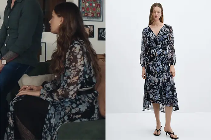 Jasmine (Zoï Sévérin) porte cette robe portefeuille à fleurs dans Ici tout commence épisode 1171.