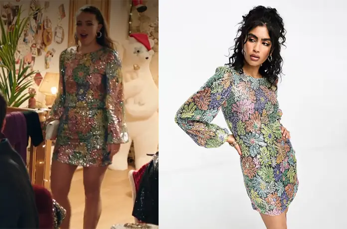 Pour la St-Sylvestre, dans Ici tout commence épisode 1340, Anaïs (Julie Sassoust) porte cette petite robe à motif floral rétro.