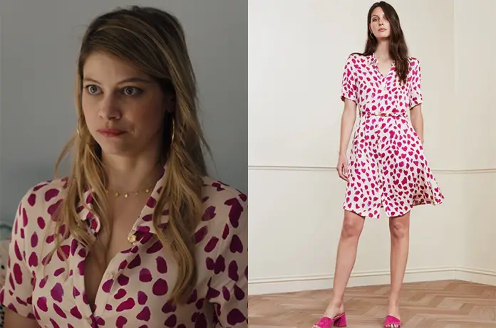 On peut voir ce que l’on veut dans l’imprimé de la robe de Laetitia (Florence Coste) : j’y vois des pétales de fleurs.