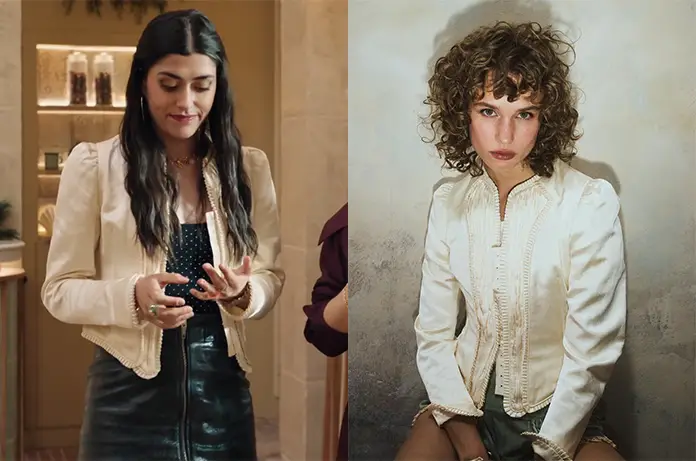 Bianca (Alexandra Ferreira) porte une veste corset en lin pour se rendre au Noël des Jourdain, dans Ici tout commence épisode 1337.