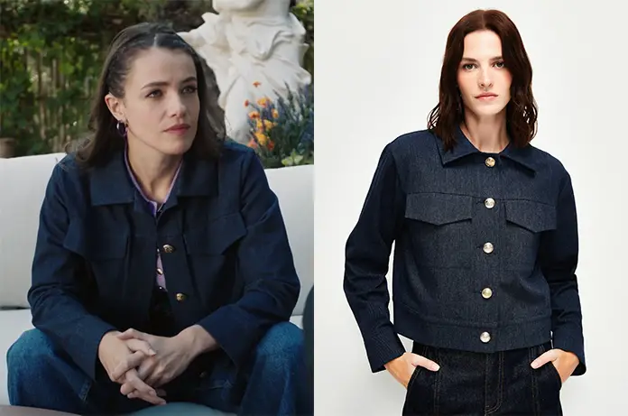Anaïs (Julie Sassoust) discute avec Teyssier dans Ici tout commence épisode 1314. Elle porte une veste bleu marine avec boutons dorés: un modèle ADL en rupture de stock