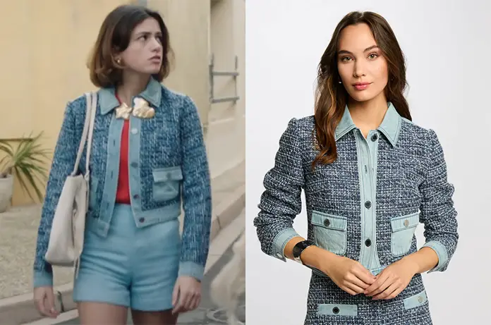 Inès (Romy Durand) porte cette petite veste en tweed dans Ici tout commence épisode 1172.
