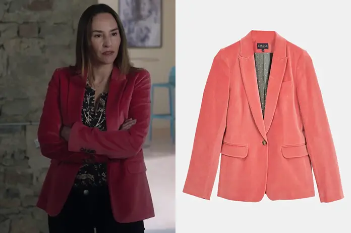 Rose (Vanessa Demouy) porte un blazer prune dans Ici tout commence 584. Le même modèle qu’elle portait déjà dans Ici tout commence 356, en rose.