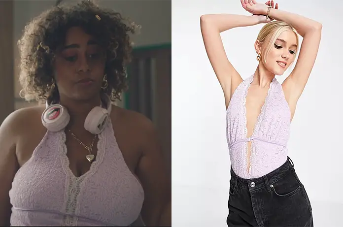 Billie (Margaux Aguilar) porte dans Ici tout commence 487 son 2e body, de couleur lilas, cette fois.