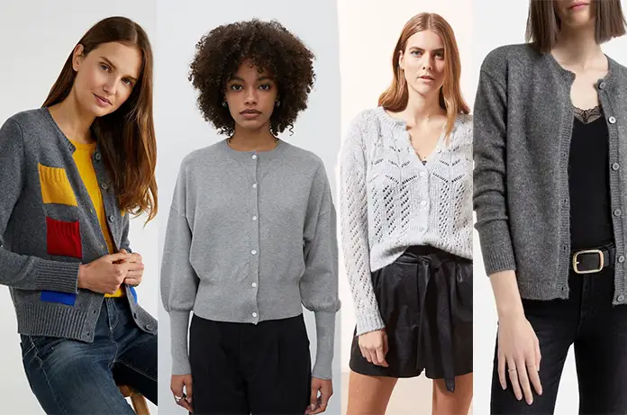 Ci-dessous, je vous donne d’autres idées de cardigans gris, cols ronds.