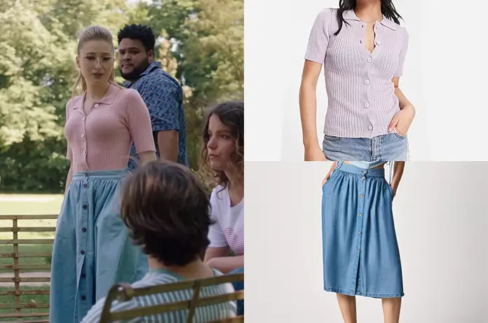 Fringues de sériesIci tout commence ICI TOUT COMMENCE : le look d’Hortense dans l’épisode 443 Par FDS - 19 juillet 2022 0 1452 FacebookTwitterPinterest Constance (Catherine Davydzenka) associe une longue jupe bleue avec un petit pull à manches courtes tout boutonné, dans Ici tout commence 443. On trouve la jupe ici et le pull ici. J’aime ça :J’aime chargement…