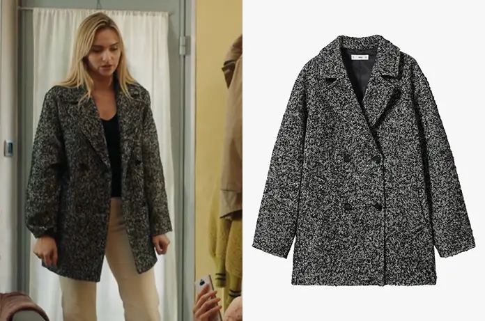 Salomé (Aurélie Pons) collectionne les nouvelles vestes. La voici dans Ici tout commence 565 avec un manteau en maille mélangée et col tailleur.