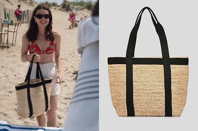 Dans Ici tout commence, on voit souvent Anaïs (Julie Sassoust) se servir d’un grand panier en raphia pour aller à la plage. S’il vous fait envie, on le trouve ici, en promo