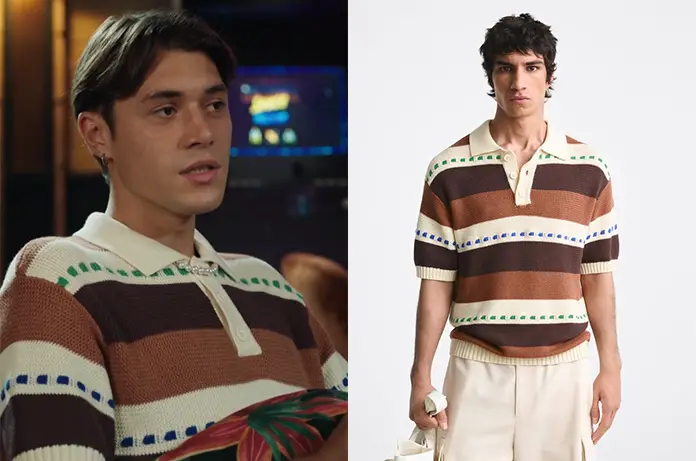 Léonard (Thomas Vilan) porte ce polo rayé en maille dans Ici tout commence épisode 784.