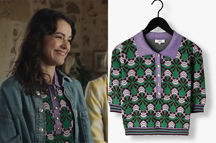 Dans Ici tout commence épisode 1168, Anaïs (Julie Sassoust) porte un petit polo vert à motifs, avec le col violet.