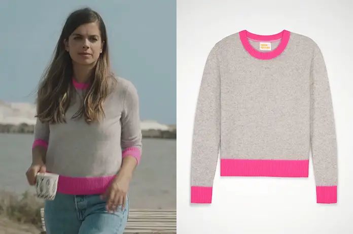 Stella (Anaïs Parello) porte un pull gris à col, poignets et bas roses dans Ici tout commence 265. Il est de la marque From Future
