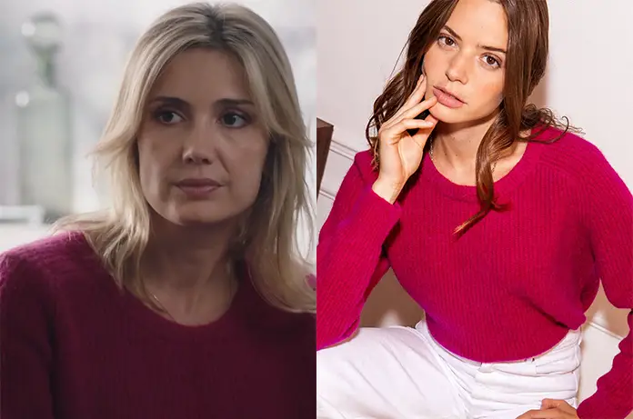 Constance (Sabine Perraud) porte un beau pull en mohair magenta dans Ici tout commence 534.