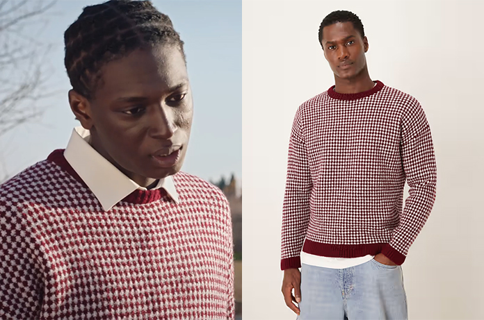 Bakary (Diatrou Cissokho) porte ce pull ras du cou bordeaux dans Ici tout commence épisode 1397. On le trouve ici.