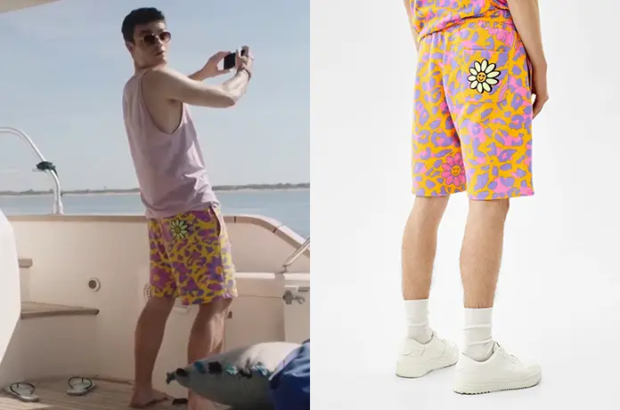 Marius (Damas Roy) profite du bateau Delobel, dans Ici tout commence 446, avec un sympathique orangé avec imprimé animalier. On le retrouve ici.