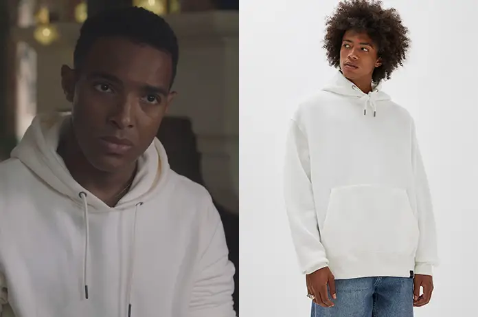 Solal (Benjamin Douba Paris) portait un sweat à capuche blanc dans ici tout commence 282. On en trouve de toutes les couleurs ici