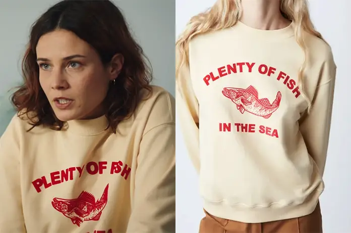 Fringues de sériesIci tout commence ICI TOUT COMMENCE : le sweat « plenty of fish » de Fleur dans l’épisode 1339 Par FDS - 30 décembre 2025 0 10 FacebookTwitterPinterest capture d’écran « Ici tout commence » épisode 1339, source Auvio Dans Ici tout commence épisode 1339, Fleur (Malou Mullier) porte ce sweat « Plenty of fish ». On le trouvait ici, mais il est sold out. Cheffes costumières : Camille Bonneau, Laetitia Harvey J’aime ça :J’aime chargement…