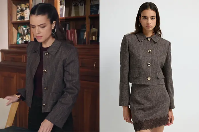 Depuis qu’elle est directrice de l’Institut Armand, Anais (Julie Sassoust) arbore de petits blazers très chic. Les deux repérés dans les épisodes 1352 et 1353 d’Ici tout commence sont de la marque turque adl.