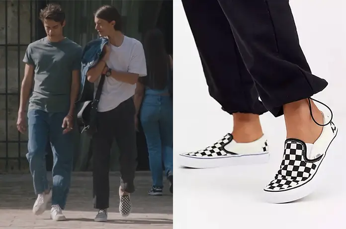 Ethan Cardone (Rik Kleve) fait son entrée à l’Institut Armand pour visiter les lieux, dans Ici tout commence 474. Il sympathise avec son futur adversaire au concours d’entrée, Axel. Il porte aux pieds des sneakers à damier que l’on trouve ici.