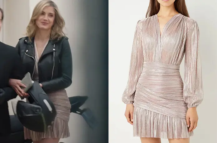 On adore la robe drapée en lurex rose de Constance Teyssier (Sabine Perraud) . On la trouve ici (Belgique) ou ici