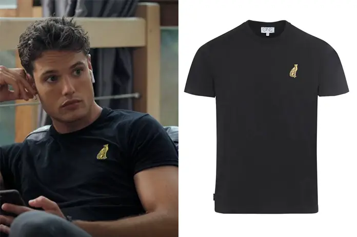 Aymeric (Camille Nicol) est un garde du corps en t-shirt noir. Mais dans Influeces épisode 29, on distingue clairement Chester le guépard sur la poitrine. Ce qui veut dire que 2 € seront reversés à une association pour la préservation des guépards à l’achat de ce t-shirt. On le trouve ici