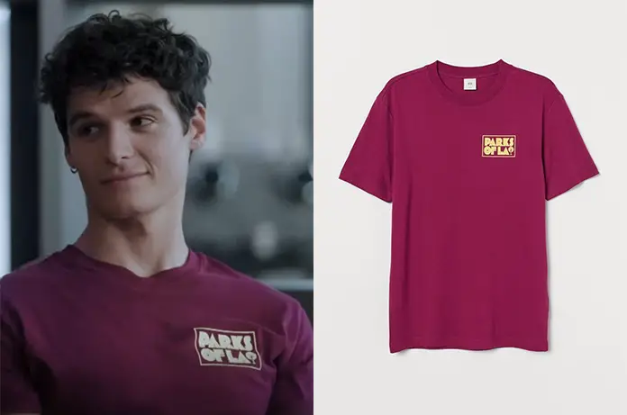 Romain (Florian Schwob) porte un t-shirt rose foncé, dans la série Influences, épisode 15, sur NRJ12. Il porte l’inscription parks of LA. On le trouvait ici