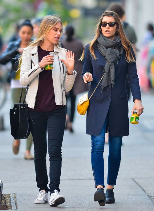 Mercredi, on pouvait croiser dans les rues de Soho l’actrice Jessica Biel flâner avec une amie. L’épouse de Justin Timberlake avait fait confiance à All Saints pour l’habiller.Des jeans slims et une paire de chaussures All Saints, également, le modèle Crimean boot, indisponible en ce moment.