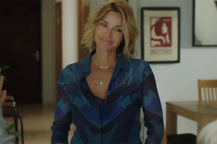 Dans Joséphine, ange gardien épisode 122, Laure (Ingrid Chauvin) est magnifique dans cette chemise de dégradés de bleus. Stéphanie Boissard, a cheffe costumière l’a dénichée à La penderie de Jenna