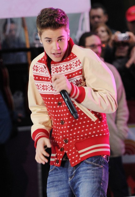 Ce 23 novembre, Justin Bieber enregistrait un concert en plein air, pour la chaine NBC, au Rockefeller Center de New York.ambiance de Noël assurée avec cette reprise de Drummer boy …Mais plus tôt, dans la matinée, Justin participait déjà au direct de l’émission TODAY où il s’est fait remarquer par une veste particulièrement laide, qui ne coûte pas moins de 1350 €. Il s’agit d’une veste cuir et laine jacquard de Junya Watanabe.