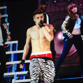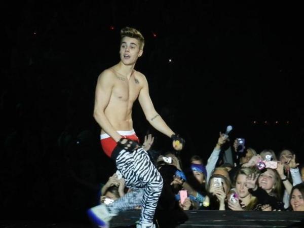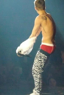 Les spectatrices du spectacle de Nashville ont dû être ravies hier soir de voir leur idole Justin Bieber tomber la chemise pour continuer le spectacle torse nu, et en pantalon zèbre à hauteur des genoux, dévoilant un boxer American Apparel rouge.