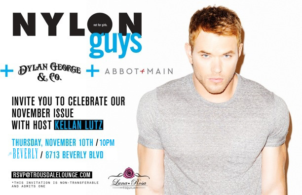 Kellan Lutz (Twilight, Immortals) a participé, bien évidemment, à la fête qui lui était dédiée au Beverly de West Hollywood. La party était organisée par le magazine Nylon guys pour célébrer Kellan qui fait la une du numéro de novembre.L’acteur portait un pull ligné, voire bariolé de la marque Jack Spade.