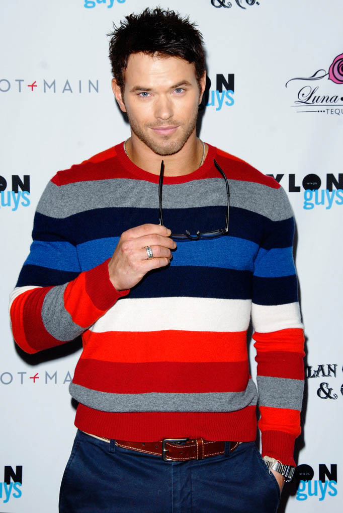 Kellan Lutz (Twilight, Immortals) a participé, bien évidemment, à la fête qui lui était dédiée au Beverly de West Hollywood. La party était organisée par le magazine Nylon guys pour célébrer Kellan qui fait la une du numéro de novembre.L’acteur portait un pull ligné, voire bariolé de la marque Jack Spade.