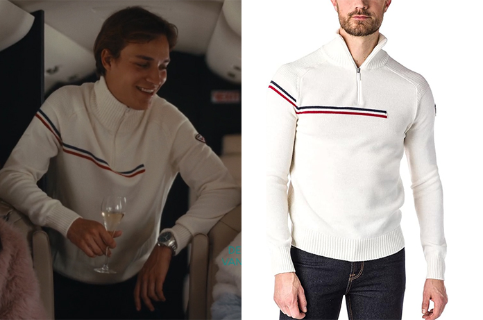 Pour Alexander (Willem De Schryver), le trajet vers les Alpes se fait avec style. Dans l’épisode 3×04 de Knokke off, jeunesse dorée, alors qu’il s’apprête à rejoindre Verbier, il arbore un look qui incarne parfaitement l’héritage du ski français : le pull Major de chez Rossignol.