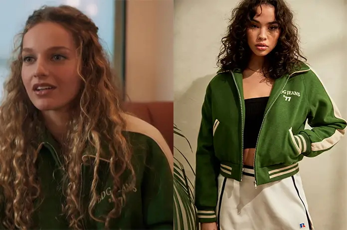 Sofia (Andrea Lovitch) porte, dans le 3e épisode de La Recrue, un blouson vert de type universitaire. Un modèle qu’on trouvait dans les boutiques Urban Outfitters.