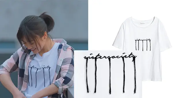 Dans Le jardin des météores, une toute mignonne série romantique chinoise sur Netflix, on voit Shancai (Shen Yue 沈月) porter ce t-shirt féministe, qui cadre bien avec son personnage. On le trouvait chez H&M.