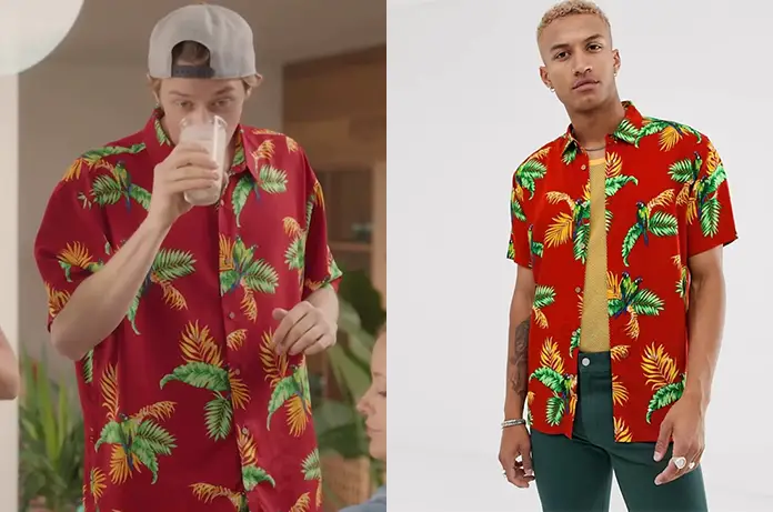 Jeff (Castle Rock) porte une chemise rouge tropicale (palmes et perroquets) dans Lena rêve d’étoile 3×04.